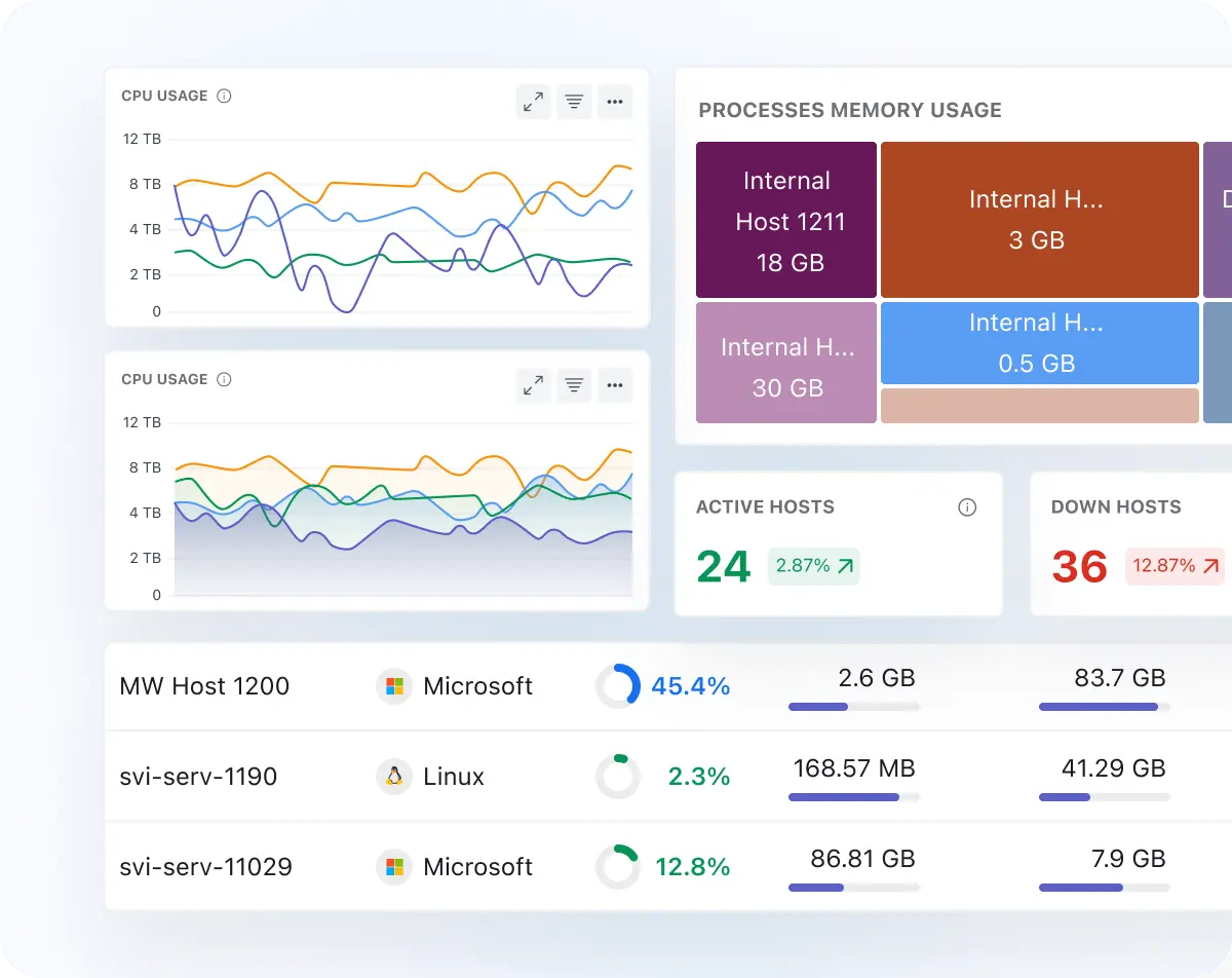 - Unified Platform: Single-pane visibility into servers, VMs, containers, cloud services, applications, networks, and more. Infrastructure metrics, APM traces, logs, and even security signals are all integrated.