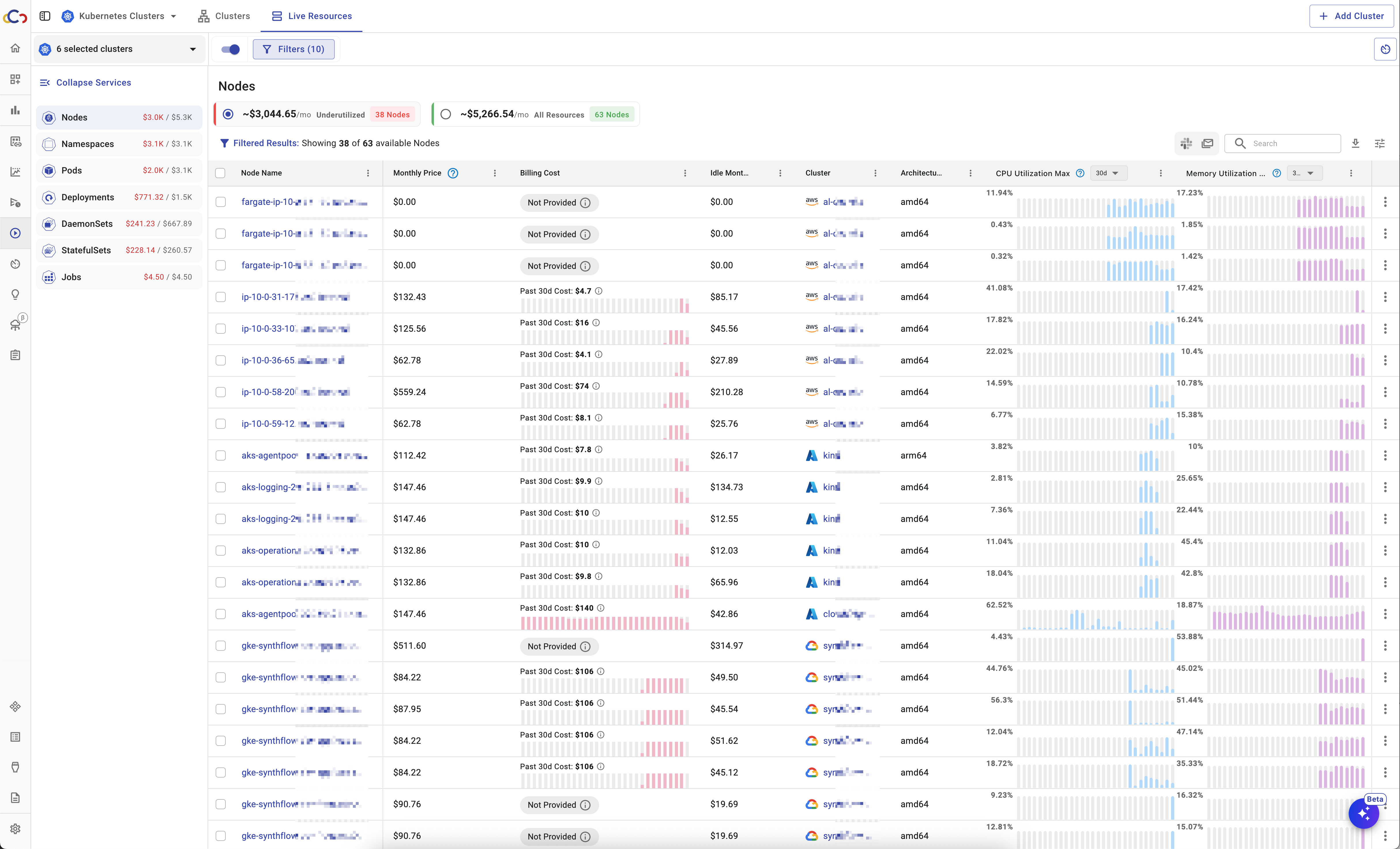 Cloudchipr provides deep visibility and optimization for Kubernetes across all major cloud providers. Users can monitor clusters, namespaces, nodes, pods, and workloads in real time, with clear views of CPU, GPU, and memory usage compared to what is actually consumed.