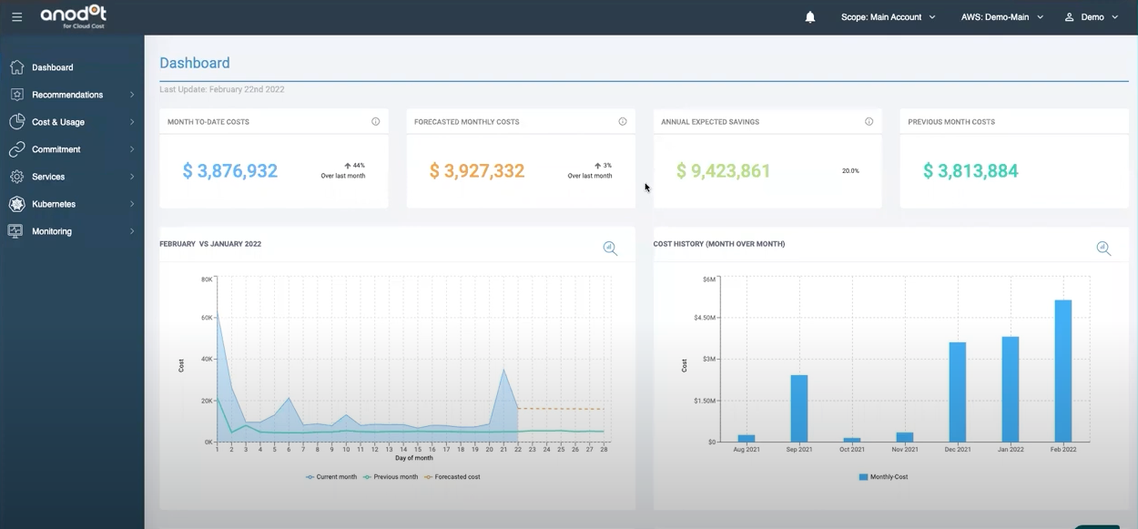 In cloud cost management, Anodot provides visibility into cloud spend, usage, and trends across multiple cloud providers, Kubernetes environments, and some SaaS tools.