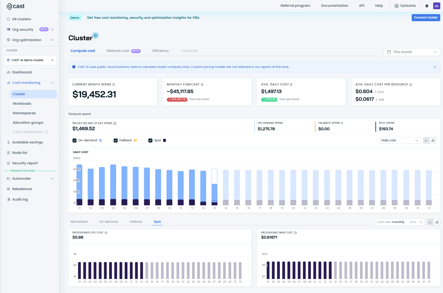 CastAI is a Kubernetes automation and cost optimization platform focused on reducing cloud costs while improving cluster efficiency. It automatically manages node provisioning, autoscaling, rightsizing, and Spot Instance usage across Kubernetes clusters running on AWS, Azure, and Google Cloud.