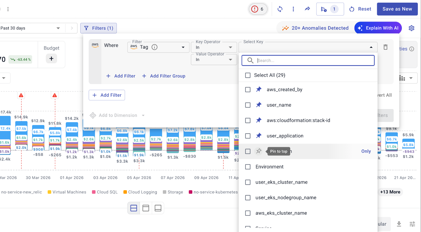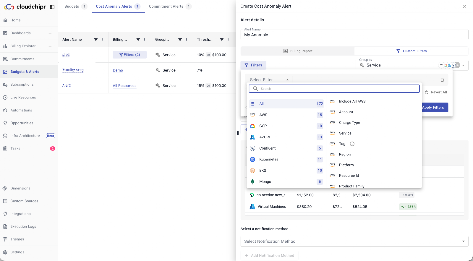 Anomaly alerts now support custom filters. In addition to report-based alerts, you can create cost anomaly alerts based on your own filters for more precise monitoring.