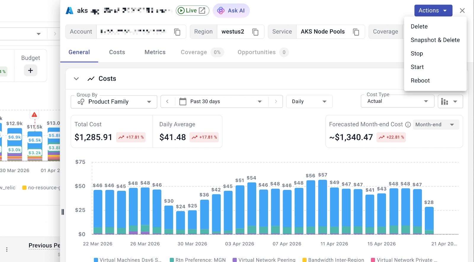 Resource drawers now support direct actions. You can take actions such as start, stop, or delete directly from the drawer, reducing the need to navigate across multiple pages.